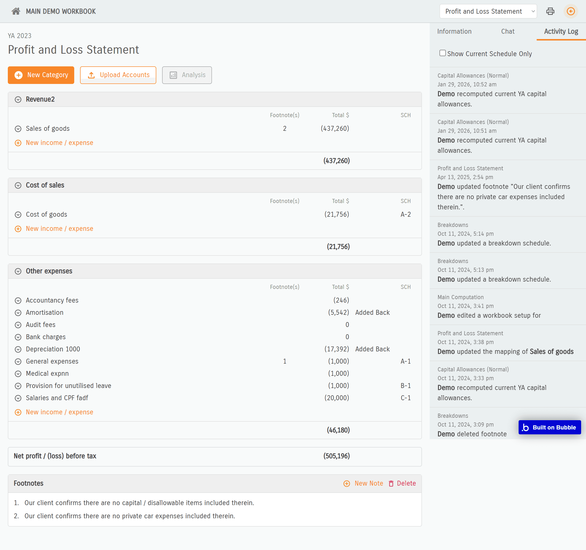 • Profit and Loss with Analytics