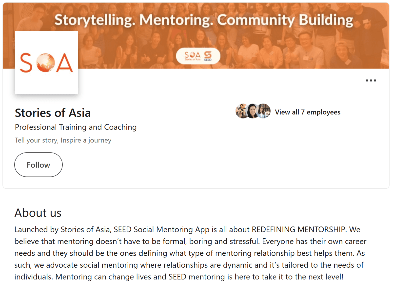 SEED was a social mentoring app led by Stories of Asia in Singapore. Featuring a Linkedin-styled feed for user engagement and a mentor matching system, SEED helped users to match with mentors. SEED was also launched as a native app.